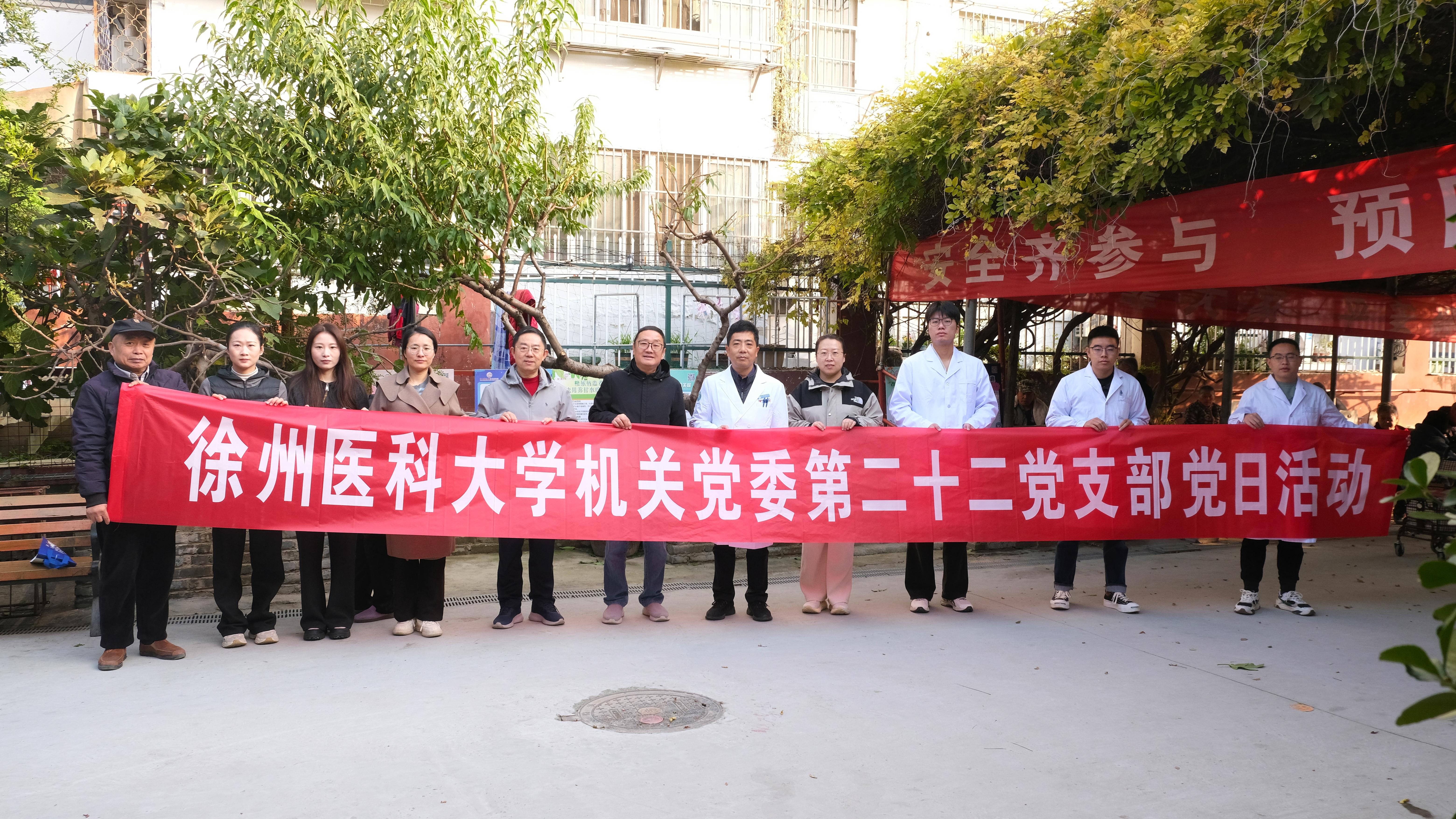 岁岁重阳,今又重阳。在这个寓意尊老、敬老、爱老的传统节日里,由徐州医科大学机关党委第二十二党支部发起、徐州医科大学养老研究院牵头组织的“关爱银龄” 重阳节党日主题活动,在云龙区康汇敬老院温情启幕。活动由徐州市云龙区养老服务业协会联合党支部书记周卫平统筹协调,徐州医科大学附属医院脊柱外科、徐州医科大学护理学院教师第二党支部、徐州永固陶瓷有限公司等单位党支部的30名党员,以及云龙区养老服务业协会艺术团成员,为敬老院的老人们送上了一场集健康关怀、物资慰问与文化盛宴于一体的节日厚礼。