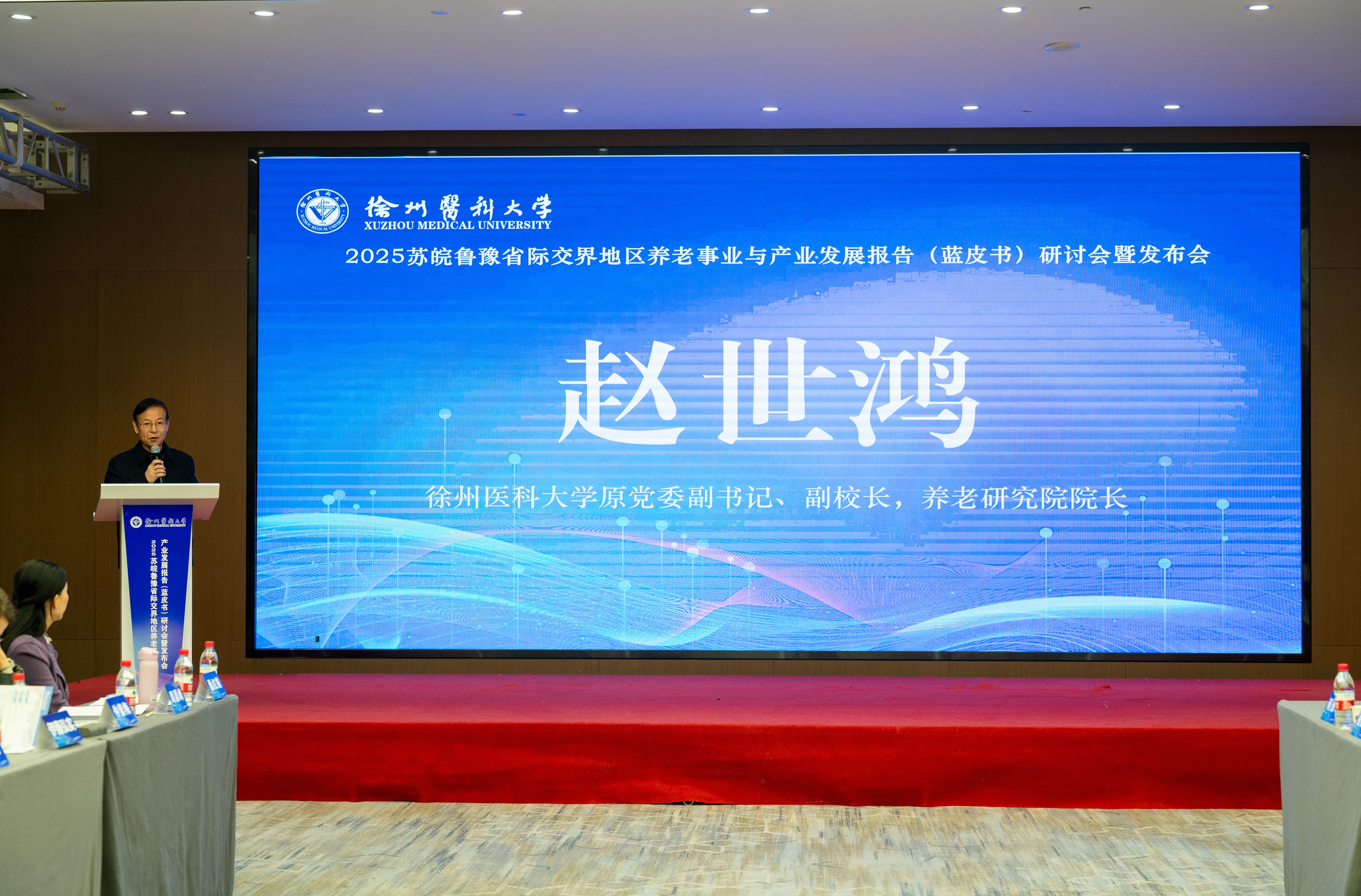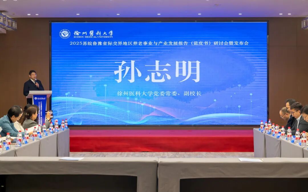 徐州医科大学党委常委、副校长孙志明,徐州医科大学原党委副书记、副校长、养老研究院院长赵世鸿,中共徐州市委研究室副主任董现荣,徐州市养老服务业协会副会长、云龙区养老协会会长周卫平共同启动《2025苏皖鲁豫省际交界地区养老事业与产业发展报告(蓝皮书)》的发布仪式。